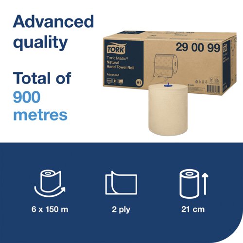 - Tork Matic Paper Hand Towel Roll Natural H1: Ideal for high-frequency washrooms, this paper hand towel roll will pamper your guests, allowing them to dry their hands gently and thoroughly. The light brown colour comes from using recycled cardboard boxes as one of the fibre sources. No dyes are added in the paper-making. Plus, only low maintenance is necessary.
